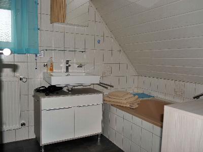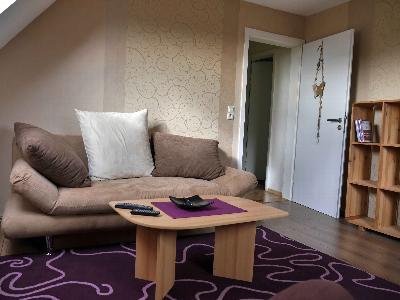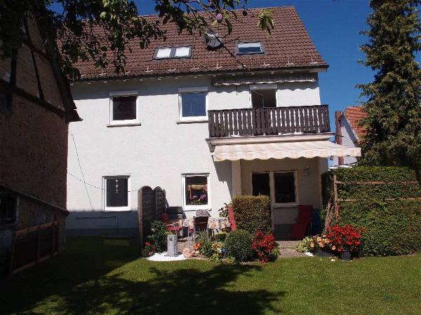 Unser Haus von außen - die Ferienwohnung ist im Dachgeschoss. Der Garten kann mit benutzt werden.